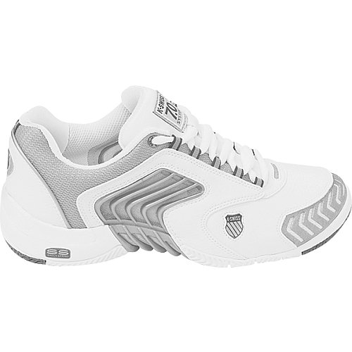 The K-Swiss® Glaciator women's tennis shoe features a blend of Fautex moisture-management technology and a Heat Deflection Core for optimal comfort and temperature control. It's crafted using leather and breathable mesh for a lightweight, supportive fit.